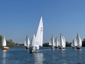 Die 2. Vorständin Sabine hatte dankenswerterweise die Regattaleitung übernommen und wurde auf dem Startboot von Maximilian unterstützt. Trotz kleinerer Missverständnisse beim Start konnten bei leichtem Wind mit etwa 2 Beaufort erfolgreich drei Wettfahrten durchgeführt werden, in denen engagiert um gute Platzierungen gesegelt wurde.